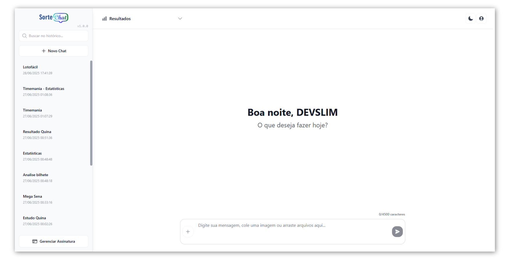 - Campo de entrada: Local onde o usuário digita suas perguntas ou comandos para o Sorte Chat.